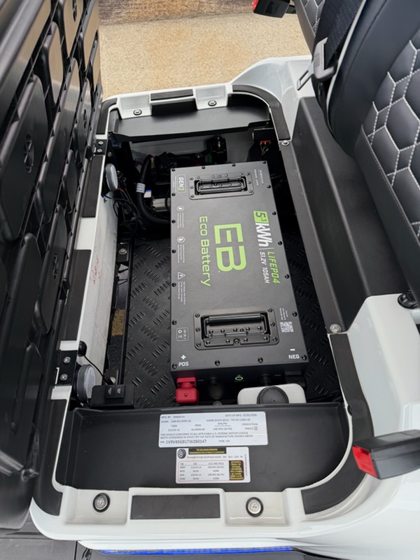 Venom EV golf carts come equipped standard with a 105 Ah LiFePO4 Lithium Battery with the option to upgrade to a 160 amp Eco Battery Upgrade.